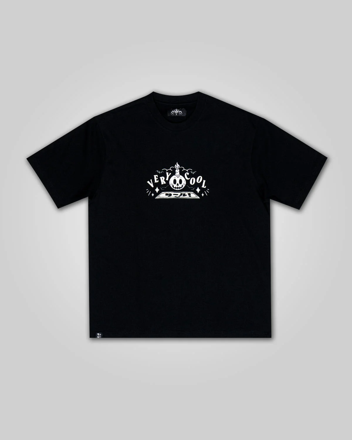 - Oversized rear screenprint with woven tag hem accent